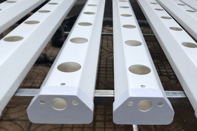- Máng ươm sử dụng ống pvc cao cấp kích thước 150mmx75. Ống này được cắt làm đôi theo chiều dọc phục vụ cho việc ươm cây theo phương pháp dòng chảy NFT.